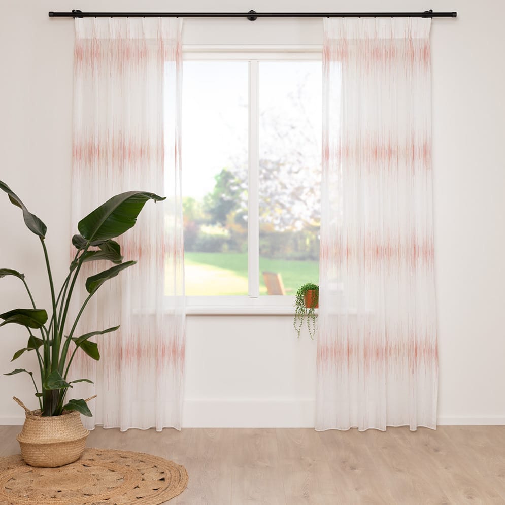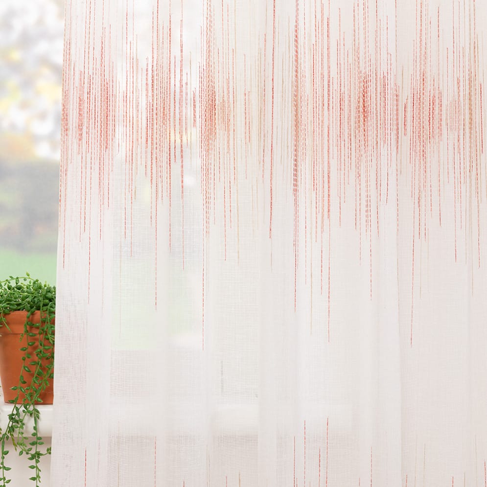 Evy ist ein weich fließender, transparenter Vorhang mit Webmuster. Ein Bleiband an der Stoffunterseite sorgt für einen schönen Fall und macht einen Saum überflüssig. Evy besteht zu 90 % aus nachhaltigen Garnen, die aus recycelten PET-Flaschen gewonnen werden.