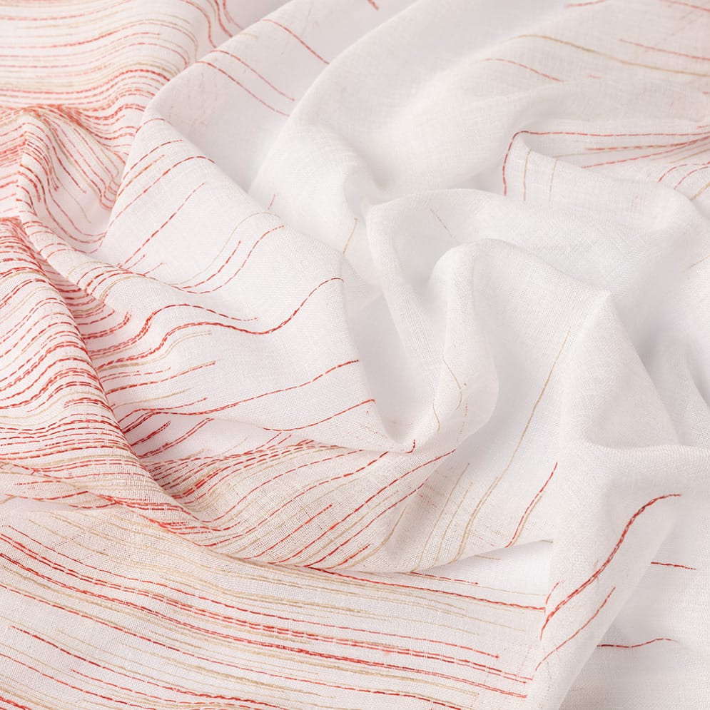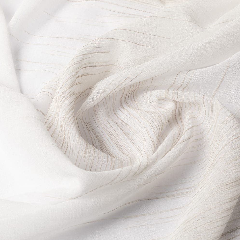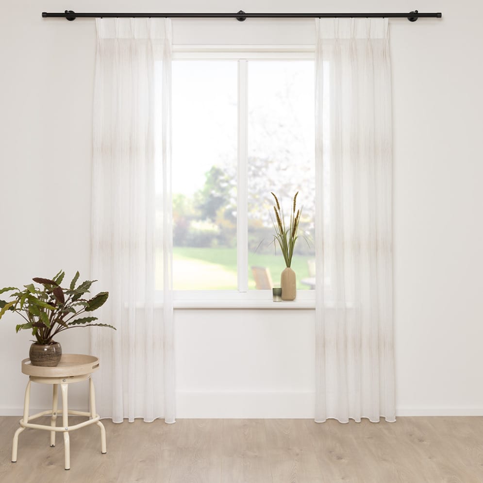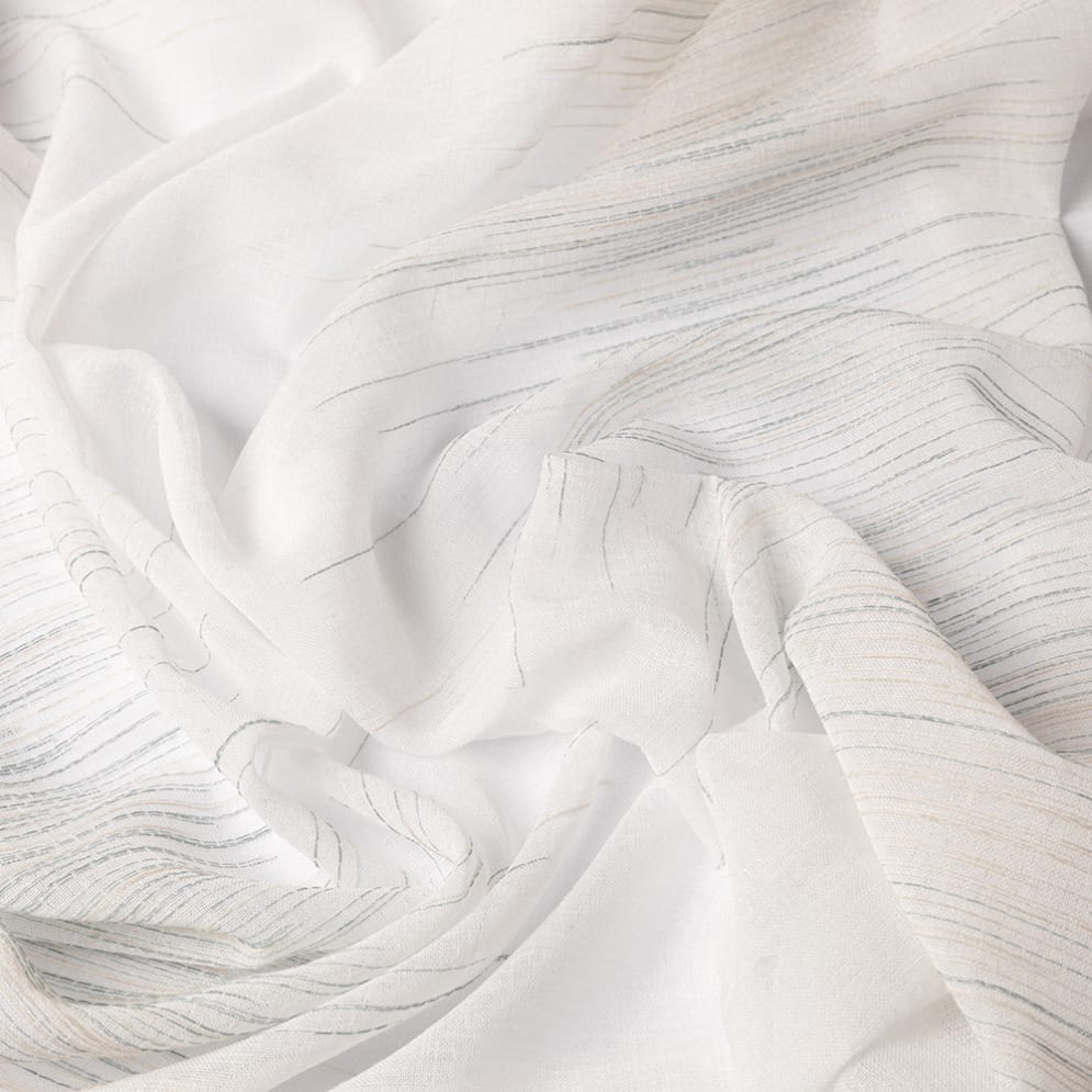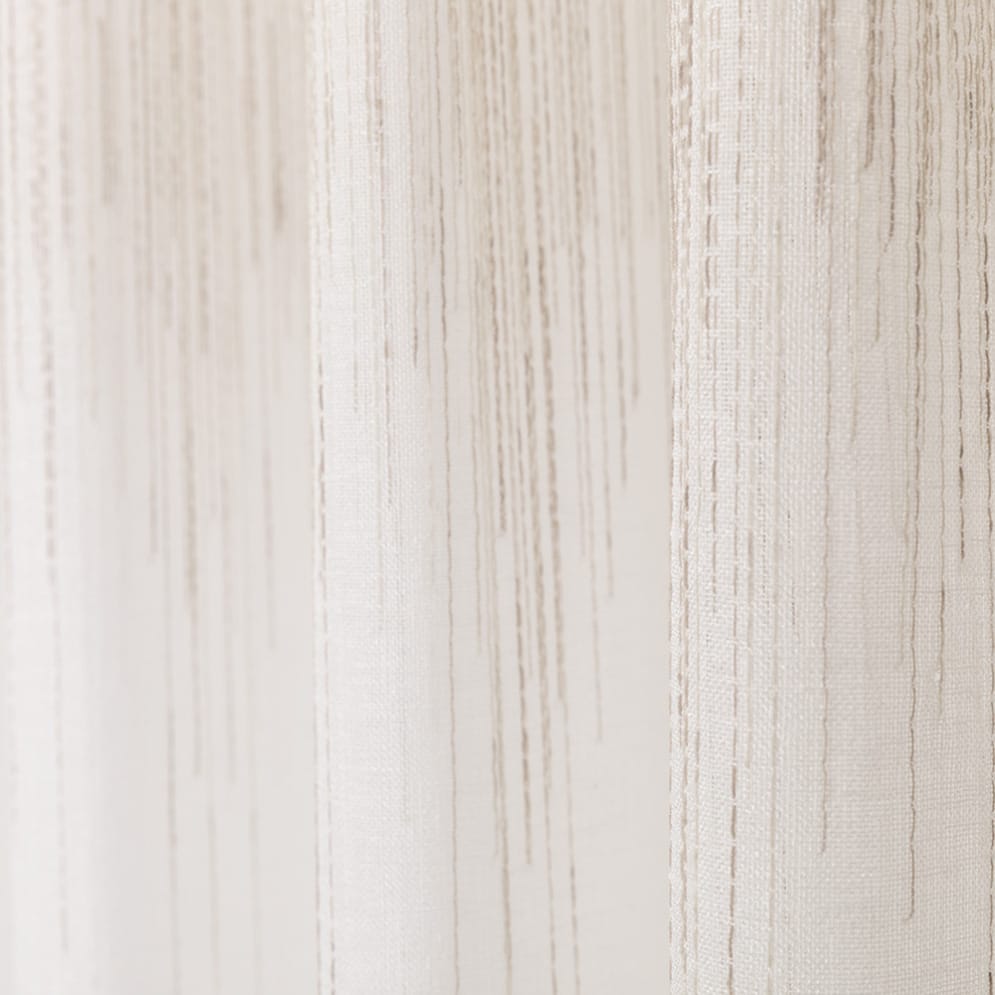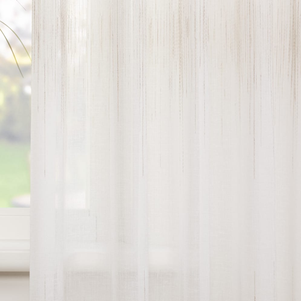 Evy ist ein weich fließender, transparenter Vorhang mit Webmuster. Ein Bleiband an der Stoffunterseite sorgt für einen schönen Fall und macht einen Saum überflüssig. Evy besteht zu 90 % aus nachhaltigen Garnen, die aus recycelten PET-Flaschen gewonnen werden.