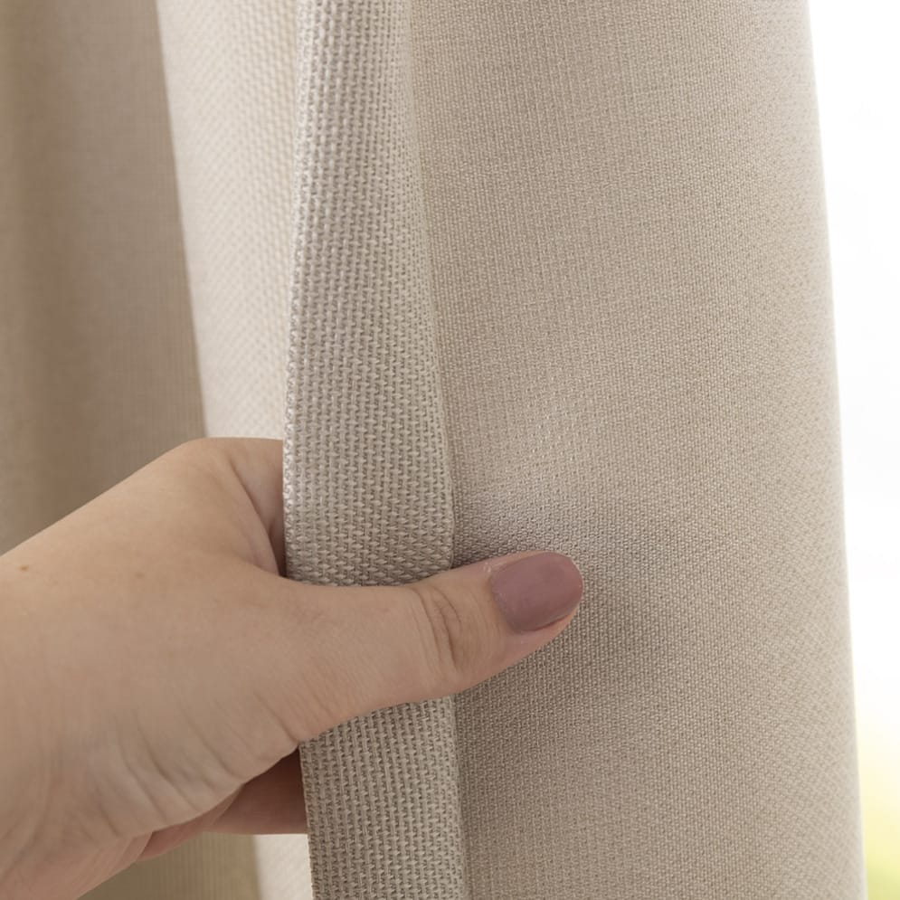 Der Gardinenstoff Formidable ist ein besonders weicher, raumhohe Stoff mit einem dezenten Melange-Effekt. Die Vorderseite besticht durch eine schöne, fein gewebte Struktur, während die Rückseite schlicht ist. Schlicht und schön. Auch dieser raumhohe Stoff lässt sich nahtlos verarbeiten. Die große Farbauswahl garantiert die perfekte Kombination für Ihr Interieur. Die Hälfte des Stoffes besteht aus nachhaltig recycelten Garnen.