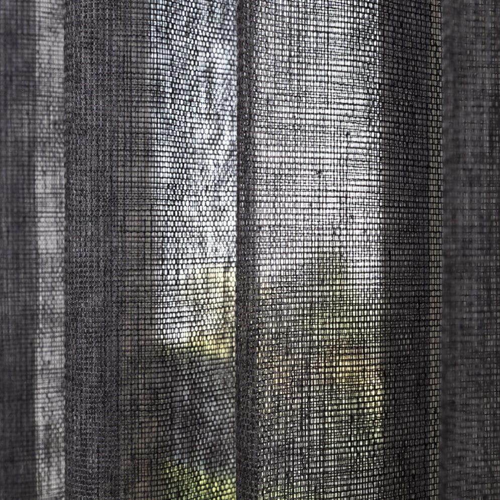 Lose gewebter, transparenter Stoff mit Netzoptik. Dieser Stoff ist flammhemmend und extra hoch, damit beim Konfektionieren keine Zwischennähte erforderlich werden. Der Stoff wurde unten mit einem Bleiband versehen, sodass der Vorhang schön fällt und nicht eingefasst werden muss. Dieser Stoff ist teilweise aus recyceltem Polyester aus PET-Flaschen gefertigt. Dieser Stoff ist OEKO-TEX-zertifiziert.