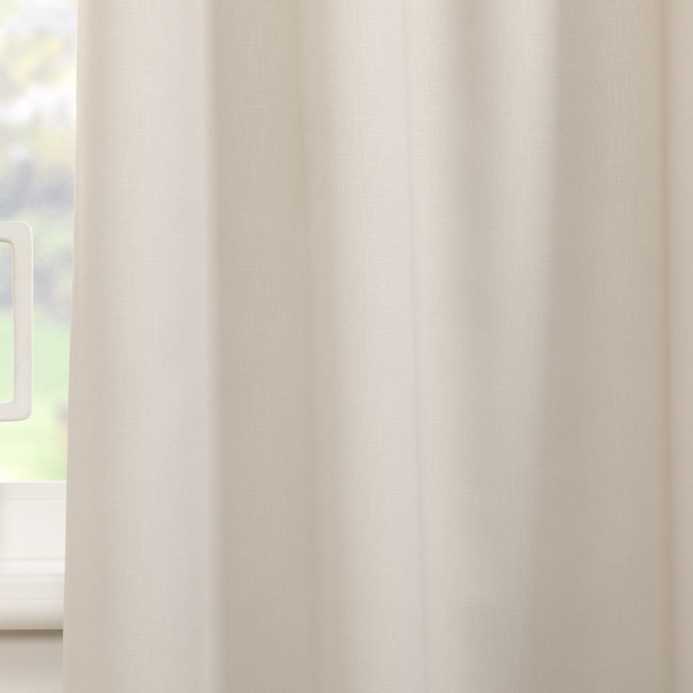 Vlamwerende half verduisterende effen gordijnstof met diepdruk weefoptiek. Soepel en mooi vallende satijn stof. De achterzijde is effen en heeft dezelfde kleur als de voorzijde.