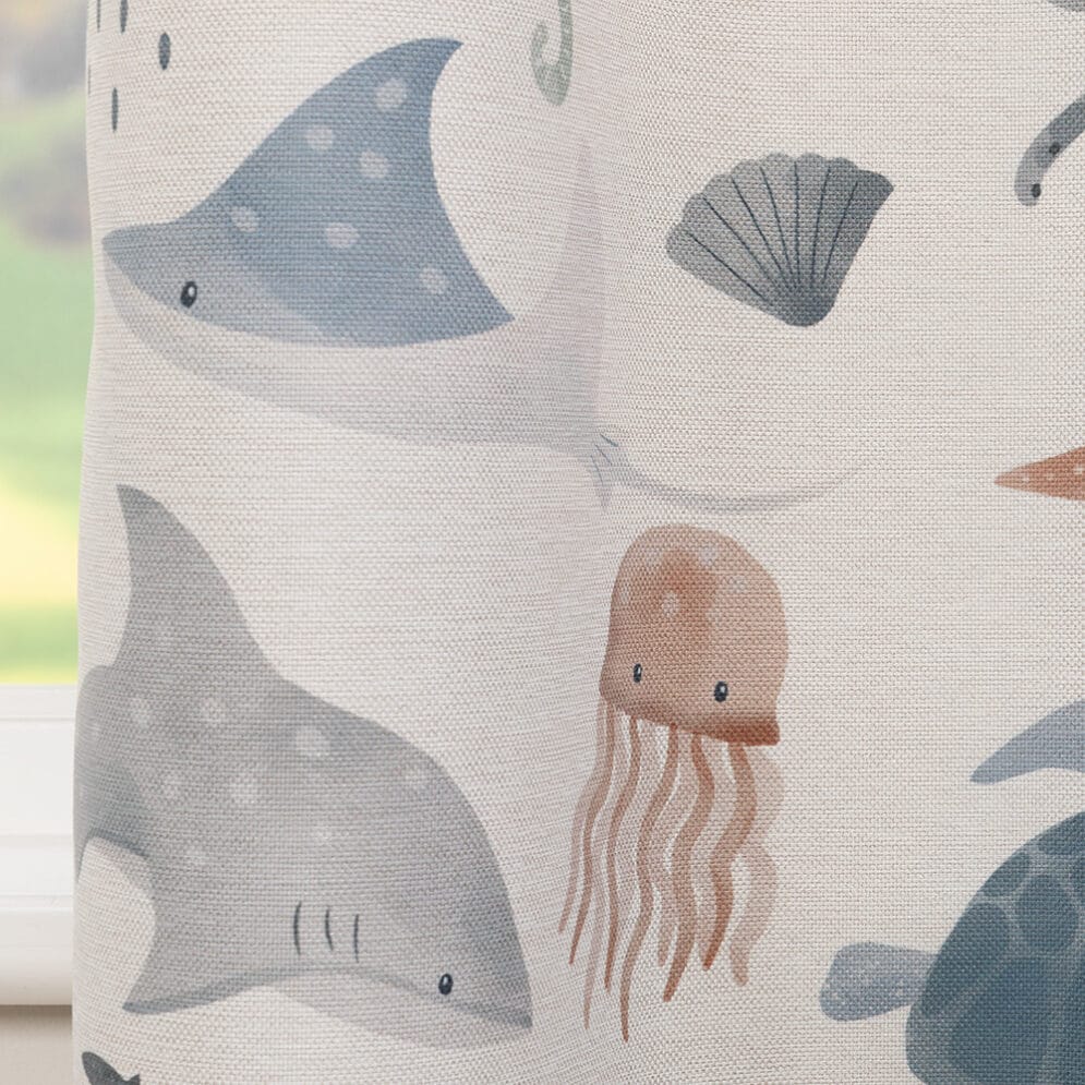 Fantasy in the sea, met deze stof waan je je in een mooie onderwaterwereld waar de details van de print je aandacht blijven trekken. Deze volumineus vallende stof leent zich goed voor een kinderslaapkamer. Naast de print heeft Fantasea nog meer geweldige eigenschappen: de stof is verduisterend en dubbel isolerend. Hierdoor laat deze kwaliteit 50% minder warmte en tot 30% minder kou door. Deze duurzame stof is bestaat uit 40% gerecycled polyester en bevat 8,5 PET fles per m2. Fantasea is geprint door ons eigen waterbesparende printer en Oeko-Tex gecertificeerd.