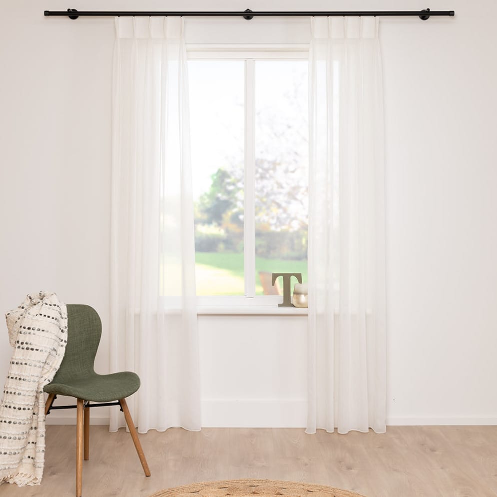 Basic, soepel hangende half transparante vitrage met verfijnd weefeffect. Beschikbaar in een uitgebreid assortiment aan stijlvolle en natuurlijke kleuren. De stof bestaat geheel uit gerecyclede garens en is extra hoog gemaakt waardoor deze mooi te confectioneren is. Aan de onderzijde van de stof is een verzwaringskoord gemaakt, zodat deze prachtig valt en er geen zoom in hoeft. Deze stof is GRS en Oeko-tex gecertificeerd.