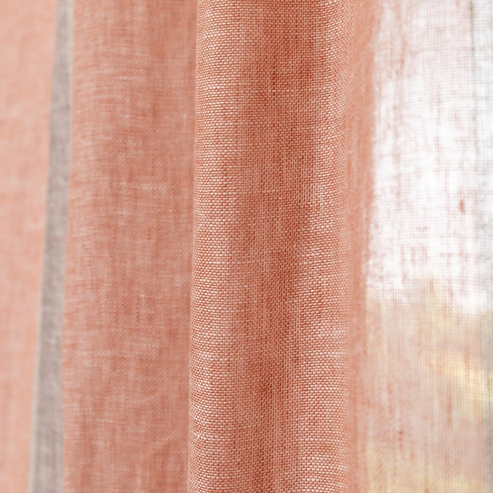 Lino is een transparante 100% linnen stof die de charme van natuurlijk linnen combineert met een subtiele kleurbeleving. Perfect voor wie valt voor de linnenlook, maar ook kleur in huis wil halen. Met drie stijlvolle kleurvarianten is er altijd een tint die jouw interieur laat stralen. Wat Lino echt bijzonder maakt, is het streepmotief dat net dat beetje extra flair geeft, zonder te overheersen. De soepel vallende stof beweegt sierlijk mee met het licht en zorgt voor een luchtige, elegante sfeer in elke ruimte.
