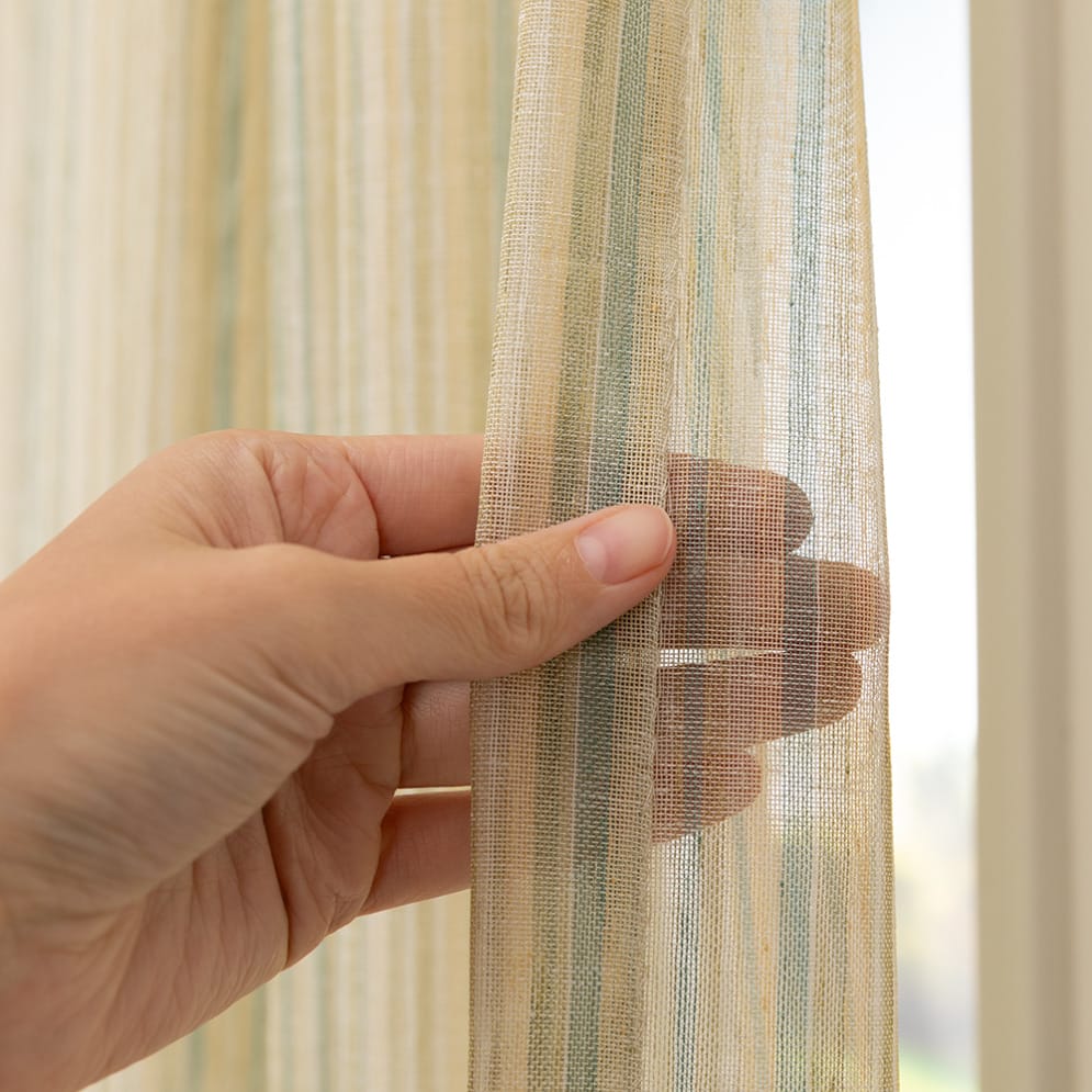 De Multi haal je letterlijk meer in huis. Deze kamerhoge transparante stof brengt een vrolijke en levendige uitstraling in elke ruimte. Dankzij het gebruik van verschillende gekleurde garens ontstaat er een speels en dynamisch effect dat je interieur direct opfrist.