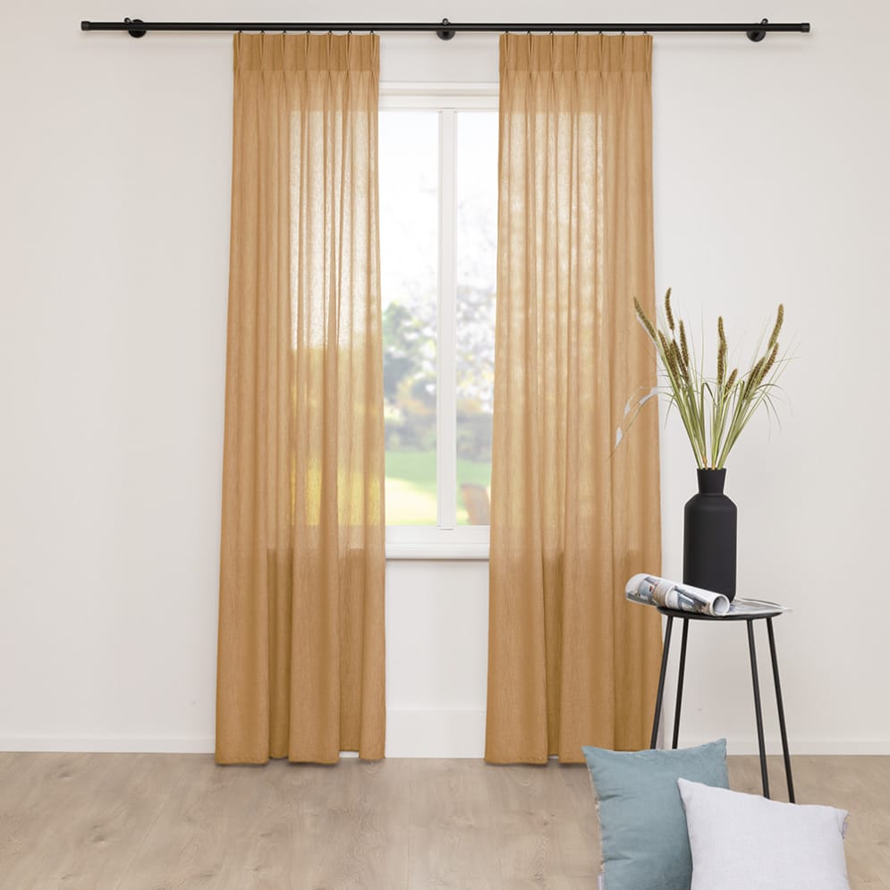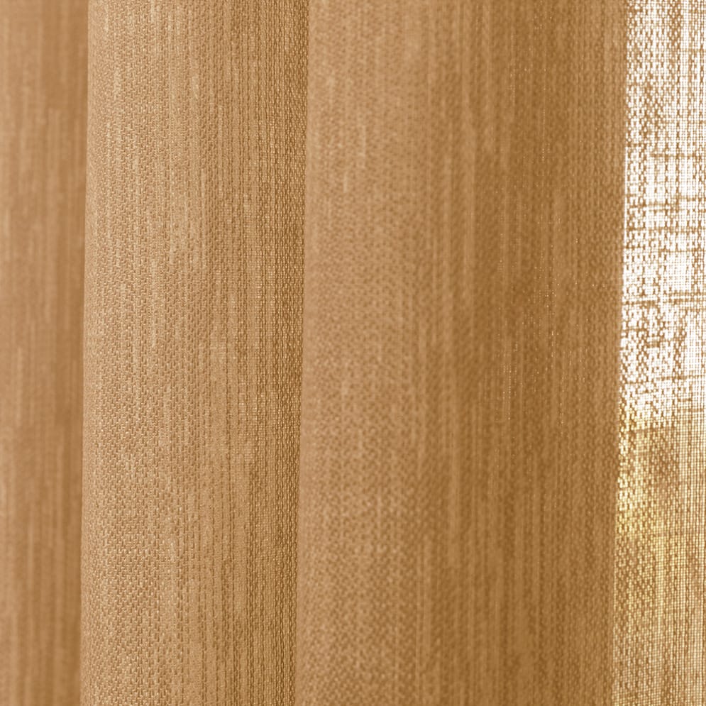 De Oasis is een hoogwaardige, vlamvertragende en luxe transparante stof. De Oasis heeft 12 kleuren. Omdat deze stof vlam vertragend is, is deze zowel thuis als in hotels en kantoren perfect toe te passen. Deze transparant is mooi in combinatie met een uni overgordijn of een uni vouwgordijn. De stof is onderin voorzien van een verzwaringskoord waardoor deze mooi valt en er geen zoom nodig is. De stof bestaat voor de helft uit duurzame gerecyclede garens.
