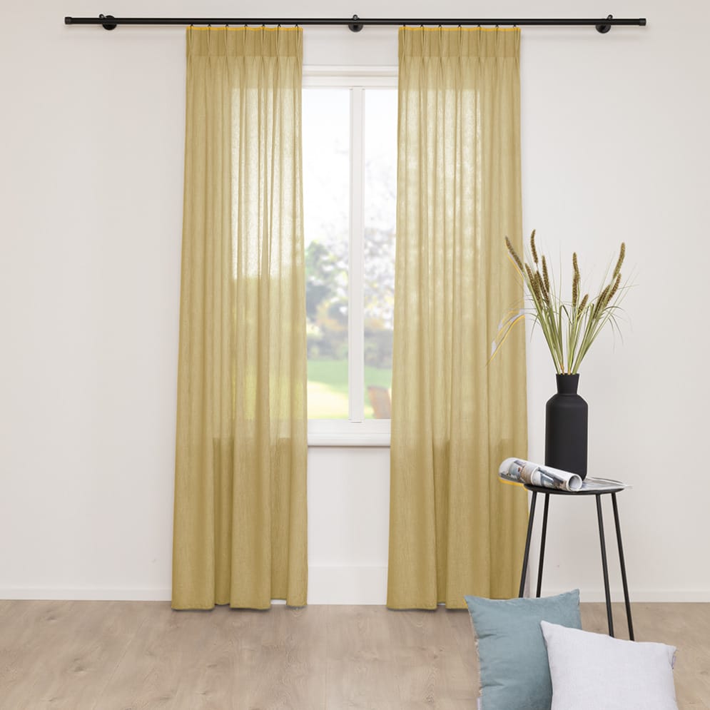 De Oasis is een hoogwaardige, vlamvertragende en luxe transparante stof. De Oasis heeft 12 kleuren. Omdat deze stof vlam vertragend is, is deze zowel thuis als in hotels en kantoren perfect toe te passen. Deze transparant is mooi in combinatie met een uni overgordijn of een uni vouwgordijn. De stof is onderin voorzien van een verzwaringskoord waardoor deze mooi valt en er geen zoom nodig is. De stof bestaat voor de helft uit duurzame gerecyclede garens.