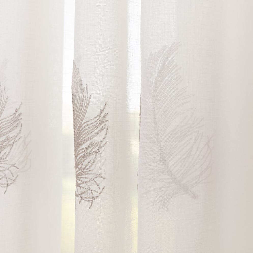 Plume is een soepele half transparante stof met subtiel dessin van geborduurde donsveertjes. Deze stof is kamerhoog zodat in het gordijn geen naden zichtbaar zullen zijn. De onderzijde van de stof is voorzien van een verzwaringskoord, zodat deze prachtig valt en er geen zoom in hoeft. Plume is maar liefst voor 90% gemaakt van duurzame garens afkomstig van gerecyclede PET-flesjes.