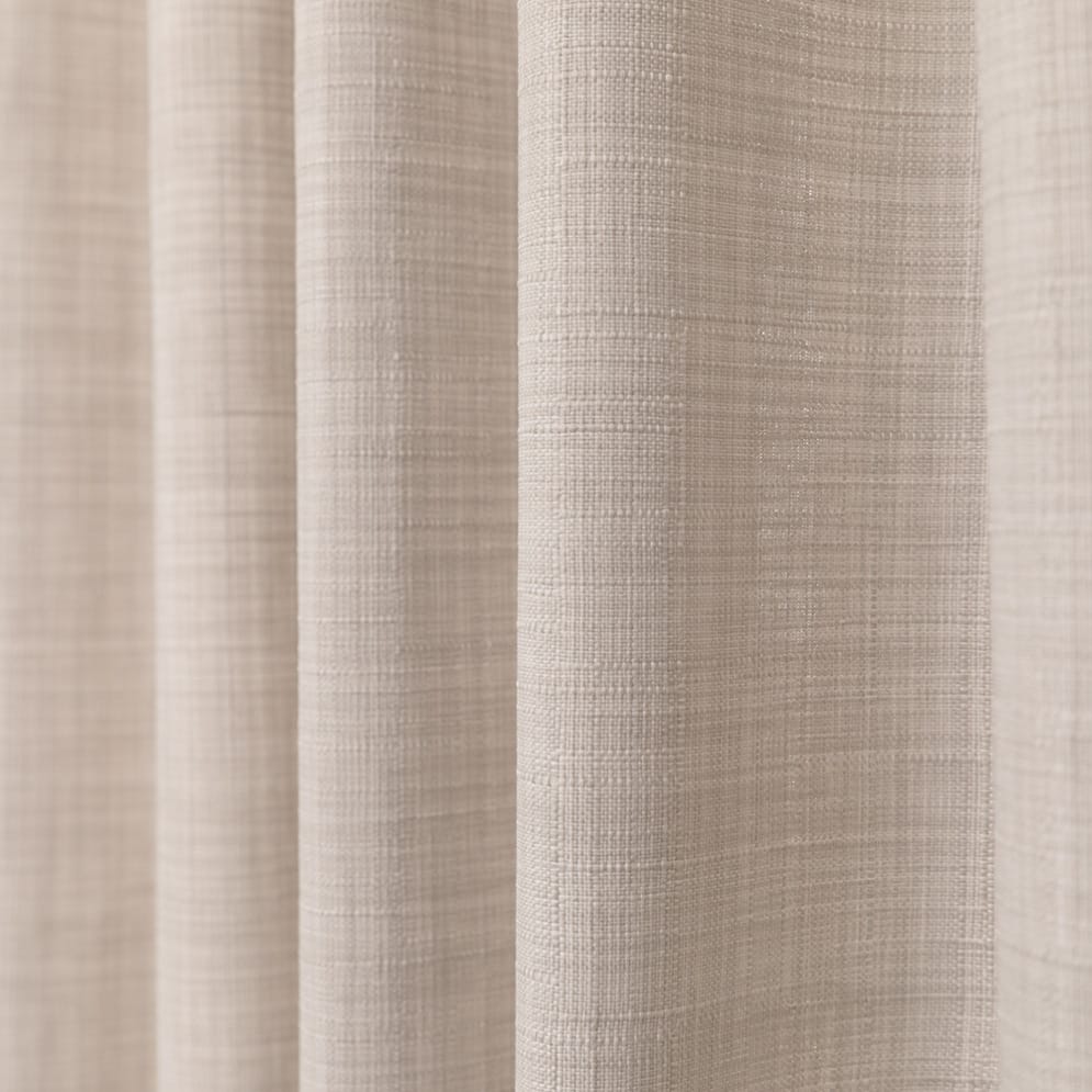 Wat Raw onderscheidt, is de verfijnde streepstructuur die als een subtiele signatuur door de stof loopt. Het geeft net dat beetje extra textuur en diepte, waardoor je gordijnen niet alleen functioneel zijn, maar ook een visueel statement maken. De soepel vallende kwaliteit zorgt voor een zachte, vloeiende beweging — een streling voor het oog én het interieur. Door de geborstelde achterzijde heeft het gordijn een verbeterde isolerende werking en een positieve invloed op de akoestiek in de ruimte.