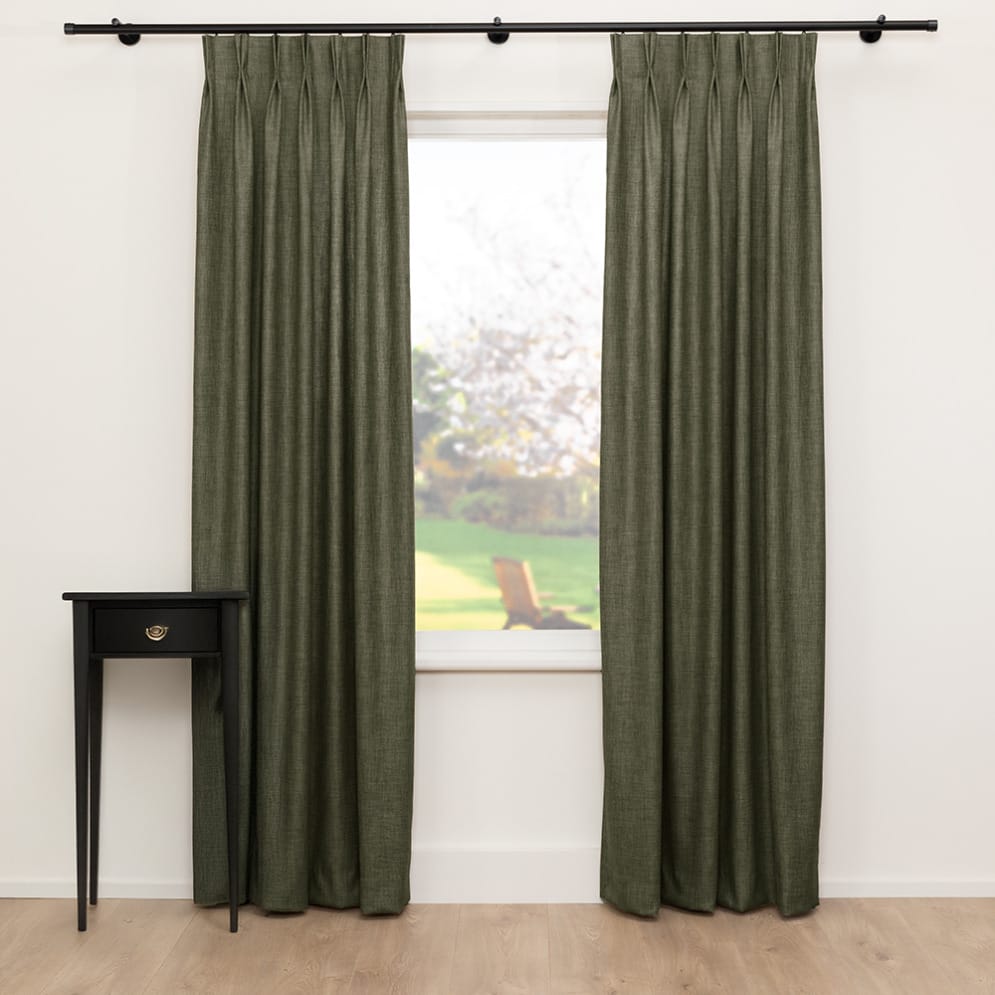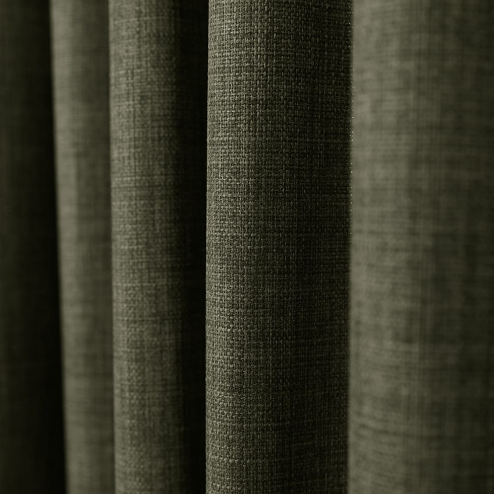 De stof is kationisch geverfd, wat zorgt voor een diepe, rijke kleuring en een subtiele textuur die het oog blijft boeien. Het resultaat? Een gordijn dat niet alleen mooi oogt, maar ook een huiselijk gevoel oproept alsof je thuiskomt, elke keer weer.