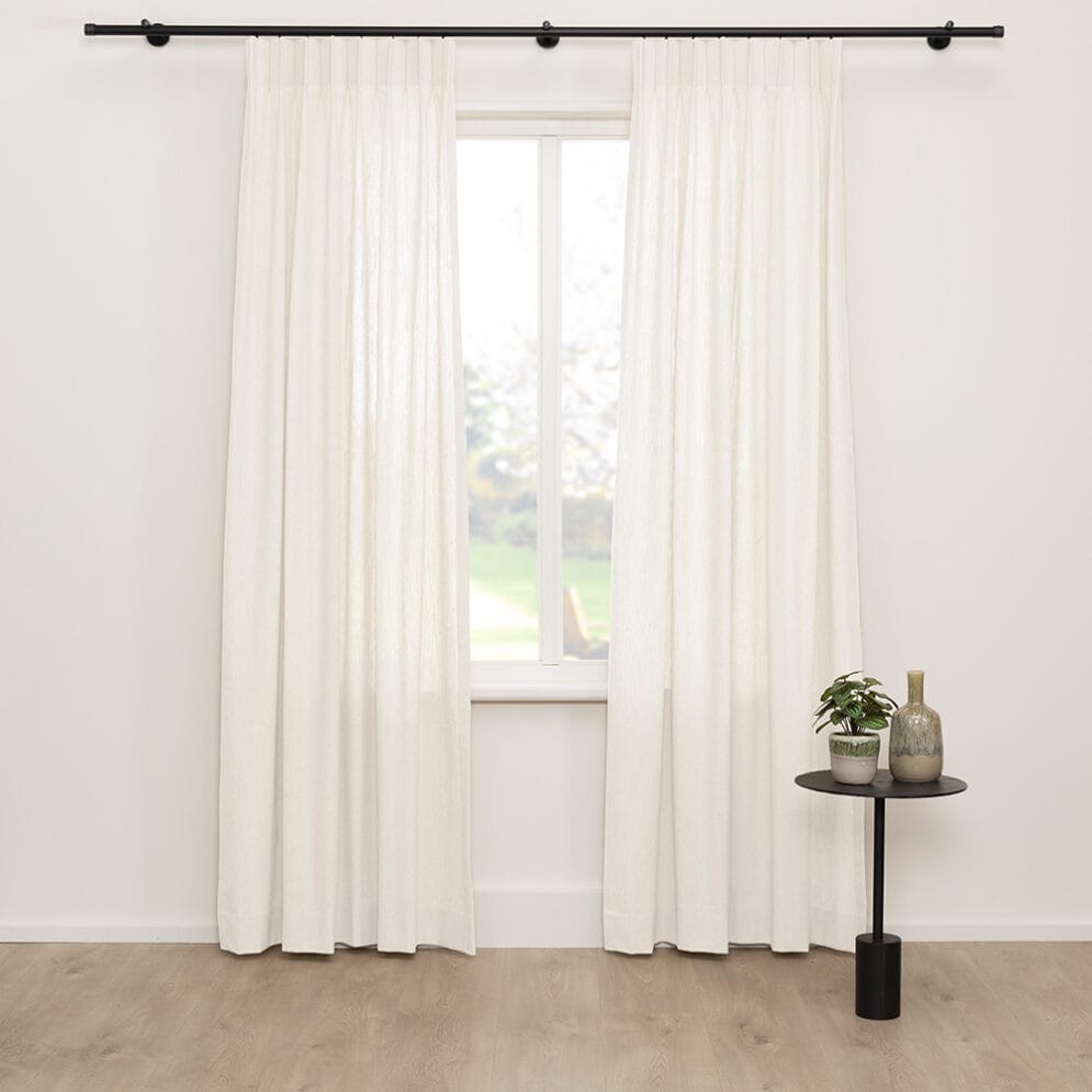 Yentle gordijnstof geeft je een behaaglijk natuurlijk gevoel omdat de uitstraling een echte uni linnenlook is en het pallet van 12 kleuren zacht en aards. Deze gordijnen zijn mooi op een triple plooi met een 10cm band voor een klassiekere moderne look. Met ringen geconfectioneerd geeft het juist een meer stoer karakter. Voor een nonchalante look adviseren we juist overlengte zodat het gordijn stotend/slepend over de vloer valt. Deze gordijnstof bestaat deels uit snijafval afkomstig van T-shirt productie.